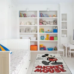 Happy Holidays from Mickey, the world’s most famous mouse! Beautifully designed, this festive rug features Mickey in a holiday wreath on a gorgeous, holiday red backgroud. Digitally printed for exceptional color and design detail, the rug measures 4’6″x6’6″. Perfect in front of your holiday tree, or in any room where you would like to add a little spunk to your holiday decor, the rug features a gel foam backing to prevent slipping.