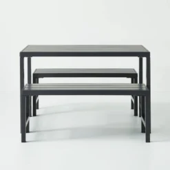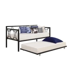- For an industrial look, use the sturdy black metal rail to hang your button-tufted headboard.