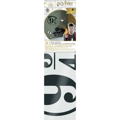 Decorate your walls with officially licensed Harry Potter magic with this Harry Potter Glasses peel and stick giant wall decal from RoomMates. All essential wizard items, from wand to hat and Hedwig the owl, are included in this oversize decal set, creating awesome wall de cor on any fan s feature wall. RoomMates wall decals are an easy and affordable way to decorate in minutes. Reposition or remove them effortlessly with no remaining sticky residue or damage to walls.