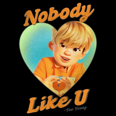 - Featuring a grpahic of Tae Young in a heart with “Nobody Like U’ printed around him