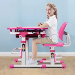 Costway Children Desk Chair Set Adjustable Study Table Drawer Winged Backrest Chair