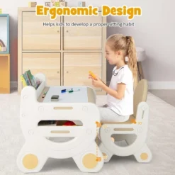 Costway Toddler Craft Table & Chair Set Kids Art Crafts Table WithPaper Roll Holder Grey/White