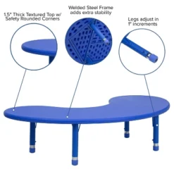 Emma And Oliver 35″W X 65″L Half-Moon Plastic Height Adjustable Activity Table Set With 4 Chairs
